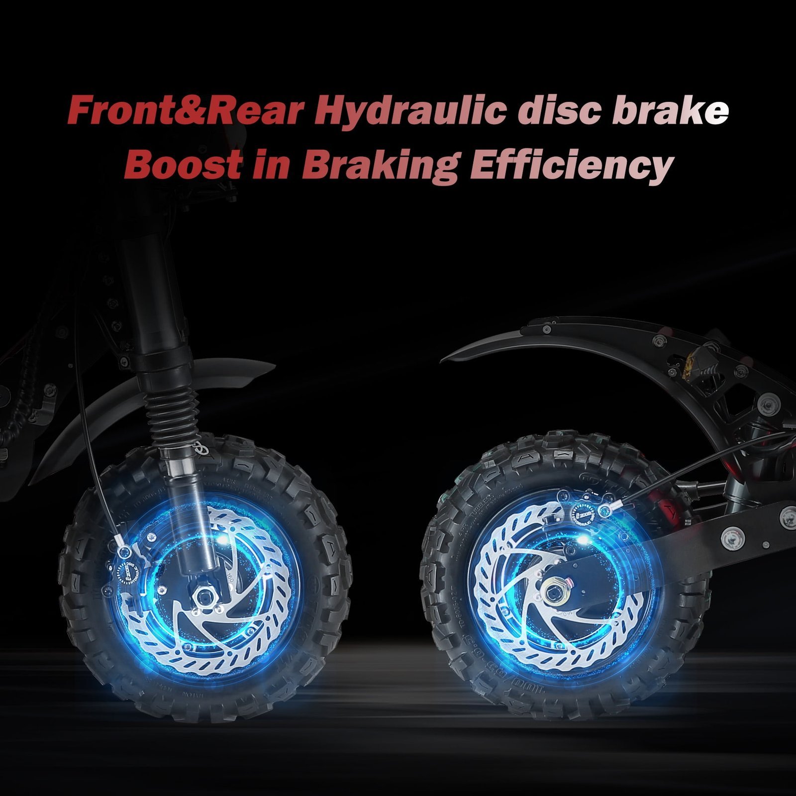 YUME Y11+ sports 60V 6000W high-speed DC brushless dual motors. This 2 x 3000W motor propels the electric scooter to a max speed of up to 50 MPH. - 3000W x 2 DUAL MOTOR